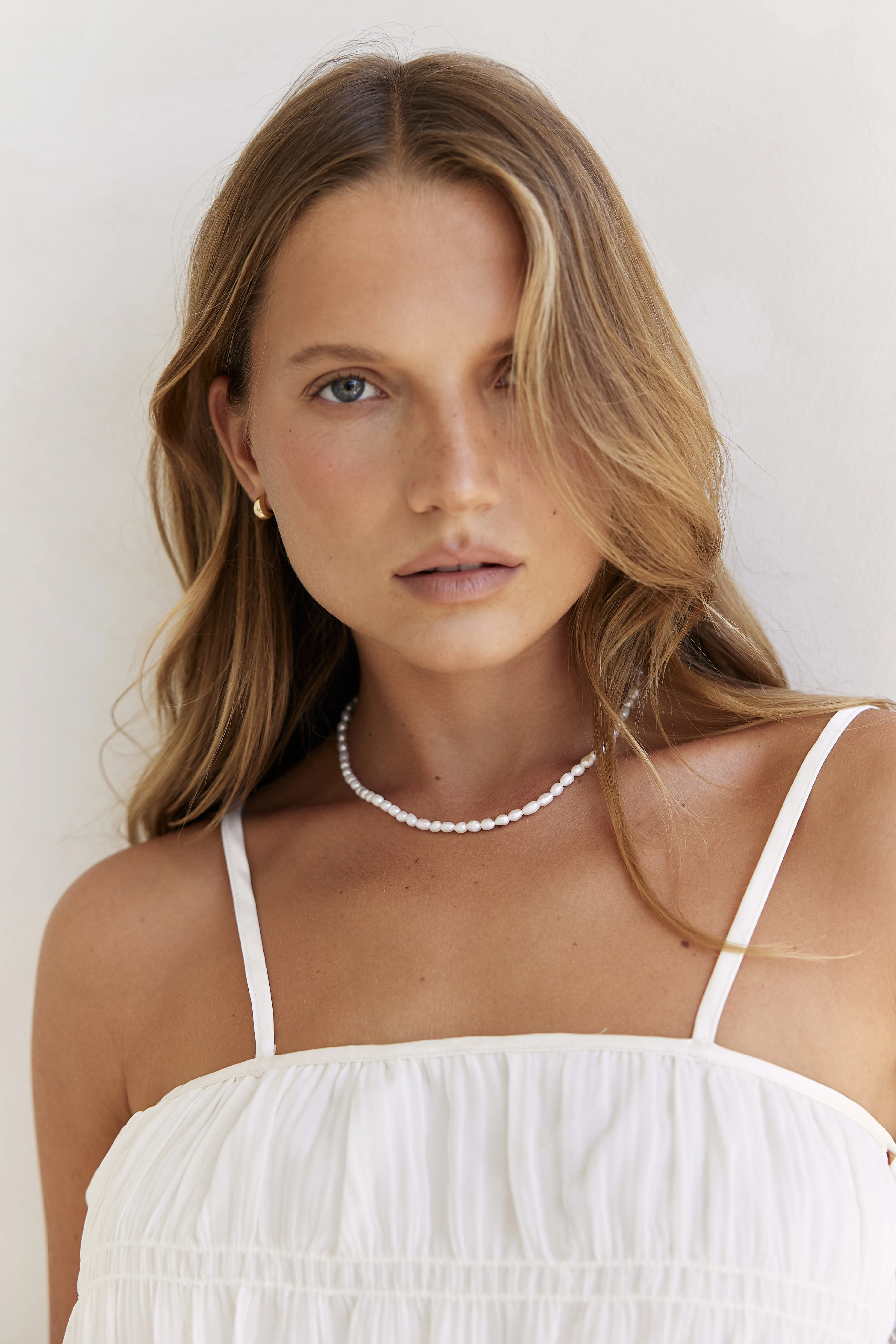 The Camilla Pearl Necklace is a refined and elegant piece, crafted with Fresh Water Pearls that add a touch of timeless beauty to any outfit. Its delicate design makes it perfect for both everyday wear and special occasions. Pair with the Camilla Pearl Bracelet for the complete look.